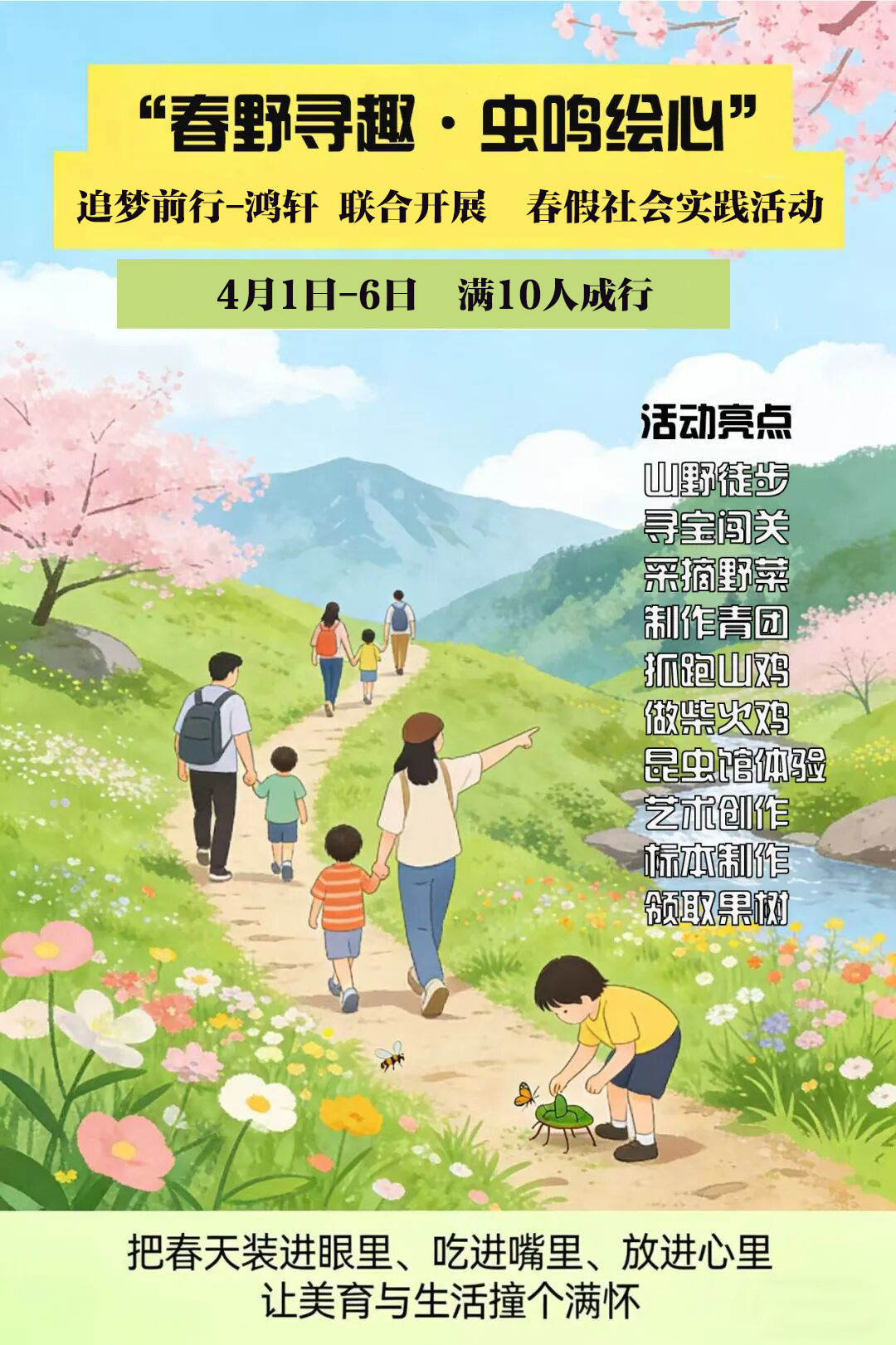 【成行条件】4月1日至6日期间,当天报名的学生人数达10人即可成行,未成行的家长可修改日期拼团。