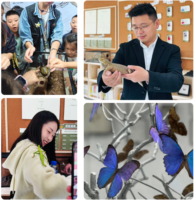 【科普讲解】参观活体昆虫科普体验馆:专业讲解员介绍昆虫种类、生长周期、生态特征,展示蝴蝶、甲虫、竹节虫等活体昆虫,解答孩子疑问。
