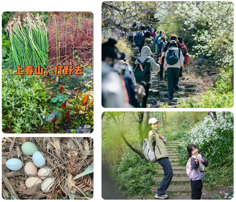 【山野徒步】专业导师带队,分小组沿安全徒步路线探索,讲解春日自然知识;